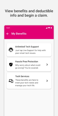 Protection 360™ HomeTech lets you manage your protection plan, access live tech support and view your benefits for your covered home tech (smartphones excluded*). With this easy-to-use app, you can get the most out of your plan, including: