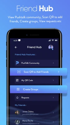 PUSHTALK takes privacy seriously. With customizable privacy settings, you can manage who can join you, ensuring safe and secure communication. Enjoy complete control over who you talk to and who can access your conversations.