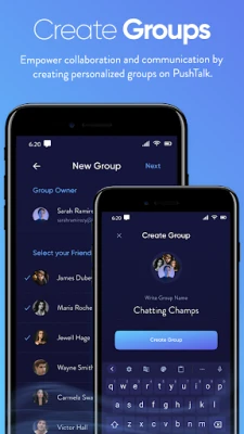 Group Voice Chat Channels: Create and join groups for seamless conversations. Ideal for coordinating with teams, friends, or family.