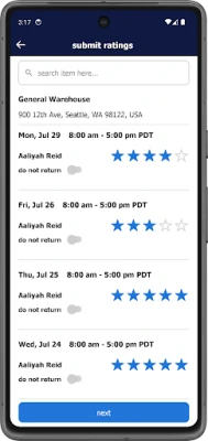 - rate employees after completing a shift and invite back your favorites