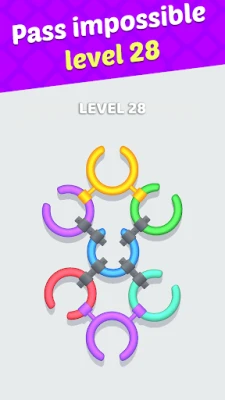 Logic is simple though: All you need to do is to untie the metal rings to pass the level.