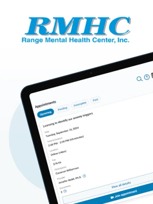 We are thrilled to announce the launch of the RMHC Client Portal, an app designed exclusively for Range Mental Health Center. The client portal is a centralized platform where clients can have on demand access to their mental health care. Here is what you can expect from our app: