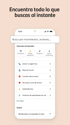 •Buscador Global: consulta tus movimientos de cuentas y tarjetas, accede a las principales acciones y operativas , y disfruta de un soporte especializado.