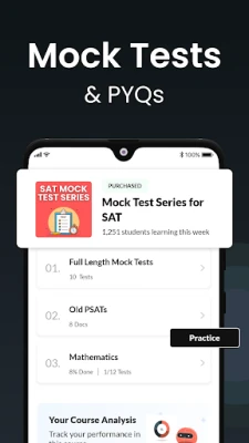 "SAT Practice Test & Exam Prep" App provides preparation study material, Short Notes of all subjects, Question BANK, Practice tests, previous year papers Online Tests, Topic Wise Tests, Daily insights, English vocabulary, Previous year question papers and Important tips & tricks.