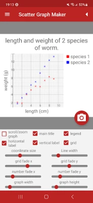 • Save scatter graphs to the phone's memory to use in your own work.