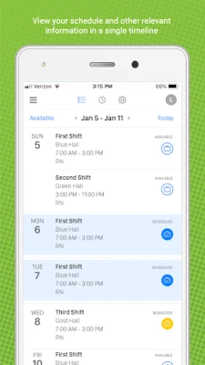 - Pick up or request shifts