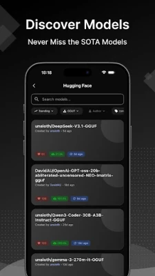 Access leading open-source models like Gemma 3n, Llama 4, DeepSeek R1 0528, Qwen 3, Phi 4, Mistral 3.2, and other advanced local AI models - download directly from Hugging Face for enhanced offline AI chat experiences. Enjoy private AI conversations with full model capabilities.