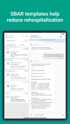 Key benefits include: · enhanced communication and collaboration between care team members. · faster response times between healthcare providers through resident-specific or general conversations. · participation in HIPAA-compliant resident-specific and general conversations. · access to company directory to search contacts.