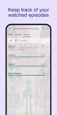 Check off and keep track: keep a record of watched episodes and movies, see your progress. Stay aware of new episodes.