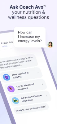 Avo™ is your in-app coach, guiding you through your weight loss journey. With positive encouragement and motivational coaching, Avo provides expert-level advice tailored to your unique goals anytime, anywhere.