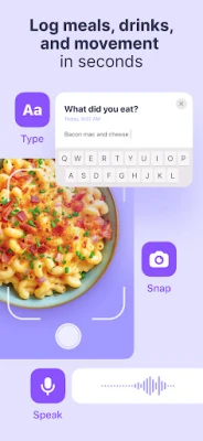 Improve habits by tracking your meals easily through typing, voice, or photos.