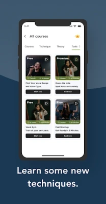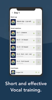 Our app includes practice tracks, Vocal exercises, vocal warm up, vocal cool down, pitch training, guess the note exercises, vocal drills, pitch test, pitch practice, ear test, ear training and more.
