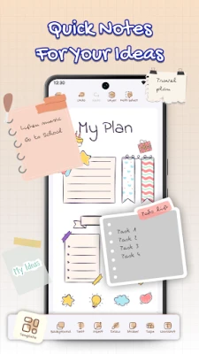 🎨 Add fun stickers and decorations to your notes. The app provides a collection of cute designs, so you can personalize your pages and make note-taking more enjoyable.