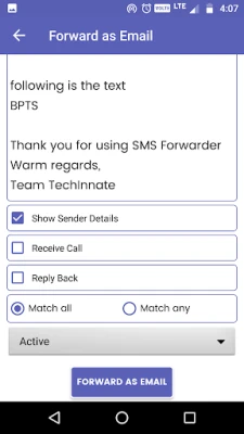 Tap “FORWARD AS SMS” to save and activate the rule.