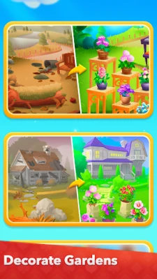 You can earn gems when playing solitaire card games, and use gems to design houses, gardens, and outdoors.
