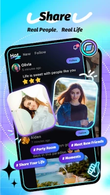 Share your musical vibes and unique stories in dynamic audio spaces. SoMatch lets you showcase talents, participate in themed challenges, and expand your social reach through real-time voice interactions.
