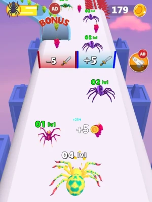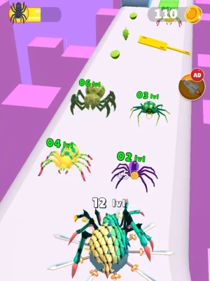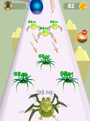 Embark on a journey as a tiny spider, aiming to become the mightiest of them all in this captivating hyper-casual mobile game. In Spider Evolution Run, your adventure starts on a vibrant running track, where every step is a leap towards becoming a stronger and larger spider.