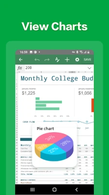•Format cells, enter/sort data, view charts, insert formulas, use find/replace, and more