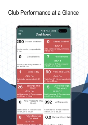 The Dashboard shows important club statistics at a glance - memberships, visitation, bookings & more.