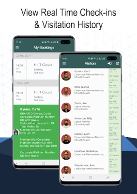 See who's working out and when. Visitation history & real time pop-ups notify you of check ins.