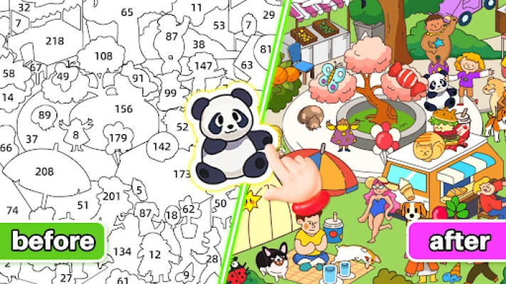 Sticker book puzzle keep things fresh with many themes. Themes of the stickerbook and color book are constantly added and updated, keeping your coloring game fun going for hours on end.