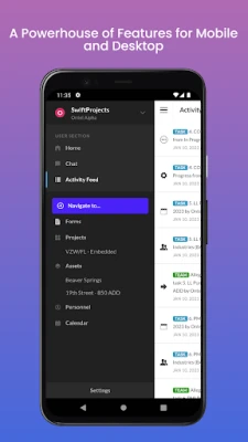Swift Projects allows companies to design and automate workflows, close out and QA live, and manage millions of interactions between people, forms, and files from any device. Whether your teams are in the field or in the office, with Swift, they stay connected and complete projects faster.