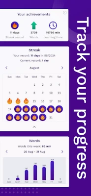 • Motivation to learn: Monitor your progress, collect achievements and stick to your goals with the built-in