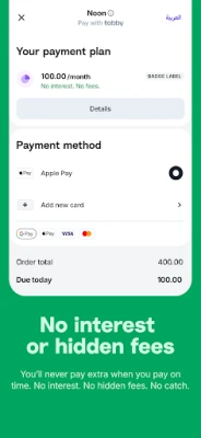 Tabby lets you shop what you love and split purchases into four monthly payments — with no interest, no hidden fees and no surprises. Whether you're shopping online or in store, Tabby gives you control, financial flexibility and peace of mind.