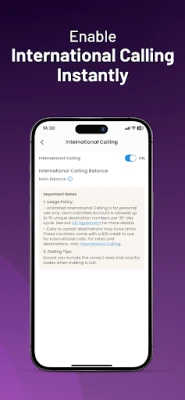 • Turn on international calling in seconds