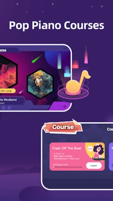 Learn piano chords and play with interactive games for a fun musical journey.
