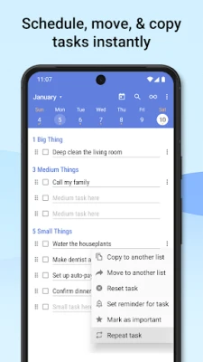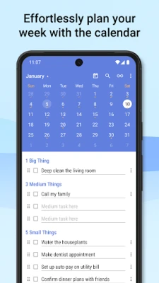 • calendar view to add tasks to any date and plan your week