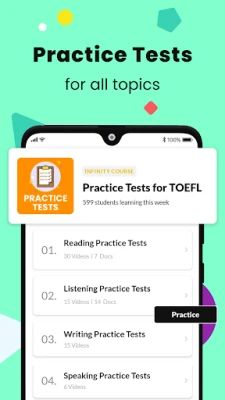Extensive Practice Tests: Access over 100+ TOEFL practice tests and mock exams with 3000+ questions.