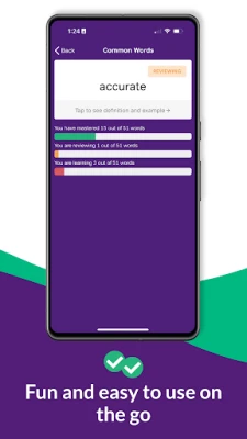 Academic research has found that memories are formed by repeated exposure to new information, so Magoosh’s flashcard app uses a spaced repetition system. Words you are learning will reappear frequently (occurring less frequently the better you know them) and words you already know won’t be repeated. The TOEFL word list is also culled to only 600 so that you don't waste time learning unimportant words.