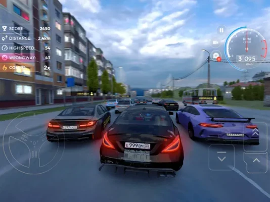 The races have different modes with unique passing mechanics. The gamer can freely ride on the roads and admire the surroundings or take part in dynamic time trials. There is a function to switch the time of day and change the weather, which allows you to practice driving in more difficult conditions. The camera displays the surrounding space from several angles. The player will see urban five-story buildings, village houses, stops and other objects.