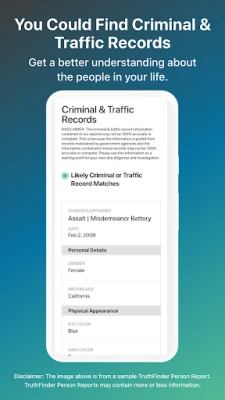 TruthFinder background checks make it easy to find people or get more details on almost anybody. Experience the power of reverse phone lookup, background check, criminal record, public records search, phone number search, and property search information all on the go.