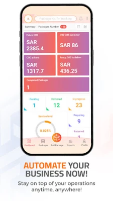 يتيح التطبيق لزبائن الشركة إدارة ومتابعة الطرود الخاصة بهم من لحظة اضافتها على النظام ولغاية تسليمها، بالإضافة لإدارة ومتابعة التحصيلات المالية وحالاتها لتسهيل متابعتها مع الشركة.
