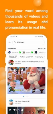 Movie Dictionary: Search for words and learn them through movie and series scenes .