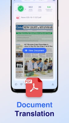 - Document Translate: Upload PDF files and get full-document translations instantly.