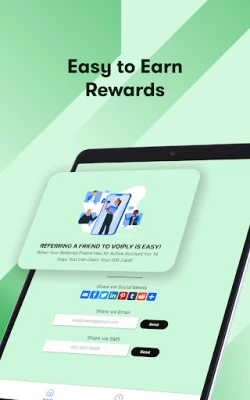 Voiply residential customers have access to an amazing reward program. Use the app to send emails and SMS messages to contacts. By referring friends and family to Voiply customers can earn up to $70 in gift cards.