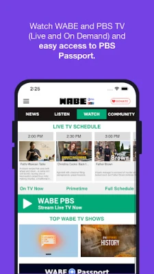 The WABE Public Broadcasting App allows you to watch and listen to all of WABE’s programs, Radio and TV! The app provides On-Demand content of all your favorite TV and radio shows, live streaming of the radio channels, PBS Kids! content with parental controls, easy access to the live radio and TV program schedule plus the ability to explore additional content!