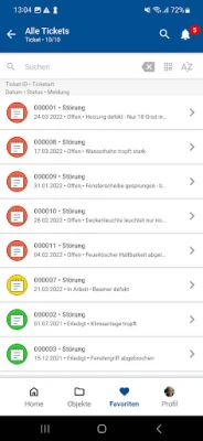 Schnelle Erfassung von Störungsmeldungen unterwegs per Smartphone und App, z.B. bei einem defekten Leuchtmittel im Keller oder einem verstopften Abfluss in der Küche.