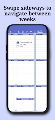 Simply swipe left or right to navigate between weeks. Look ahead to plan future events or glance back at past accomplishments seamlessly.