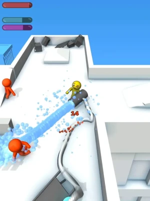 Swipe to move and take all the objects to knock all the opponents and win the fight.
