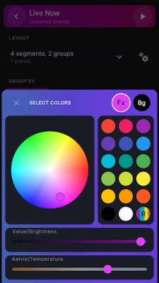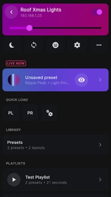 The app provides an improved user interface, better performance and a number of additional features compared to the official WLED app: - Effect previews! - Ability to organize devices into groups. - Support for "layouts", which are unique segment configurations found across your saved presets. - Smart strategy for adding new segments that automatically finds gaps in the layout or splits largest segments - Ability to automatically save new presets to a playlist - Ability to randomly cycle through all of your presets. - And more...