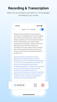 Supports real-time online voice translation in 127 languages (71 languages, 56 accents), with high translation accuracy and fast translation speed.