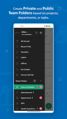 WorkDrive offers Team Folders—a shared and secure space for teams to work together. You can create Team Folders for a particular project or a department, and add all the relevant members to it. Any file added to the Team Folder will then be automatically available to each team member.