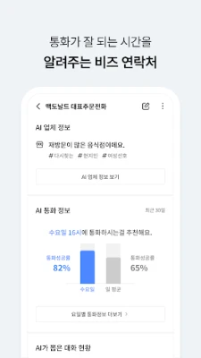 T114가 비즈연락처로 업그레이드 되어 AI가 해당 업체에 주로 어떤 사람들이 방문하는지, 언제 통화가 잘 되는지 알려줍니다