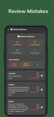 • Flashcard Review System: Reinforce challenging words with flashcards, making difficult vocabulary easier to remember over time.
