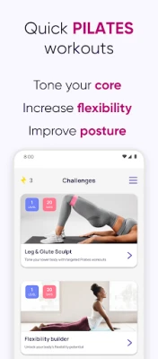 Regular pilates practice improves flexibility, increases core strength and tones muscles. Be amazed at what you can achieve in 5 minutes a day.