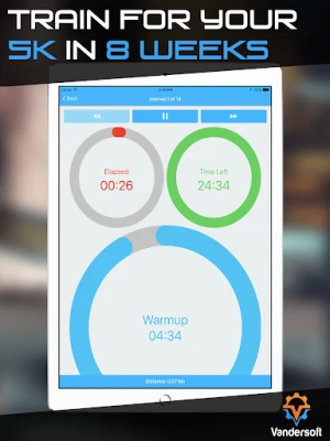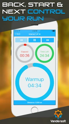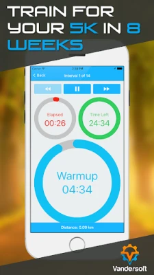 Need to stop and tie your shoe? Pause 5K Run! Or, press Back/Next to go to different intervals.